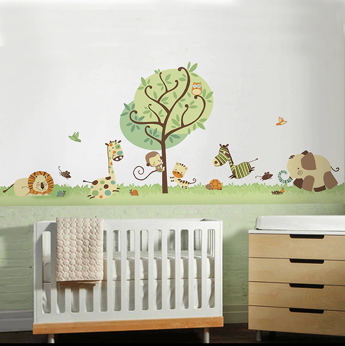 O adesivo de parede Bichos Alegres é lindo para decorar quartos de bebês e crianças com animais que eles adoram!