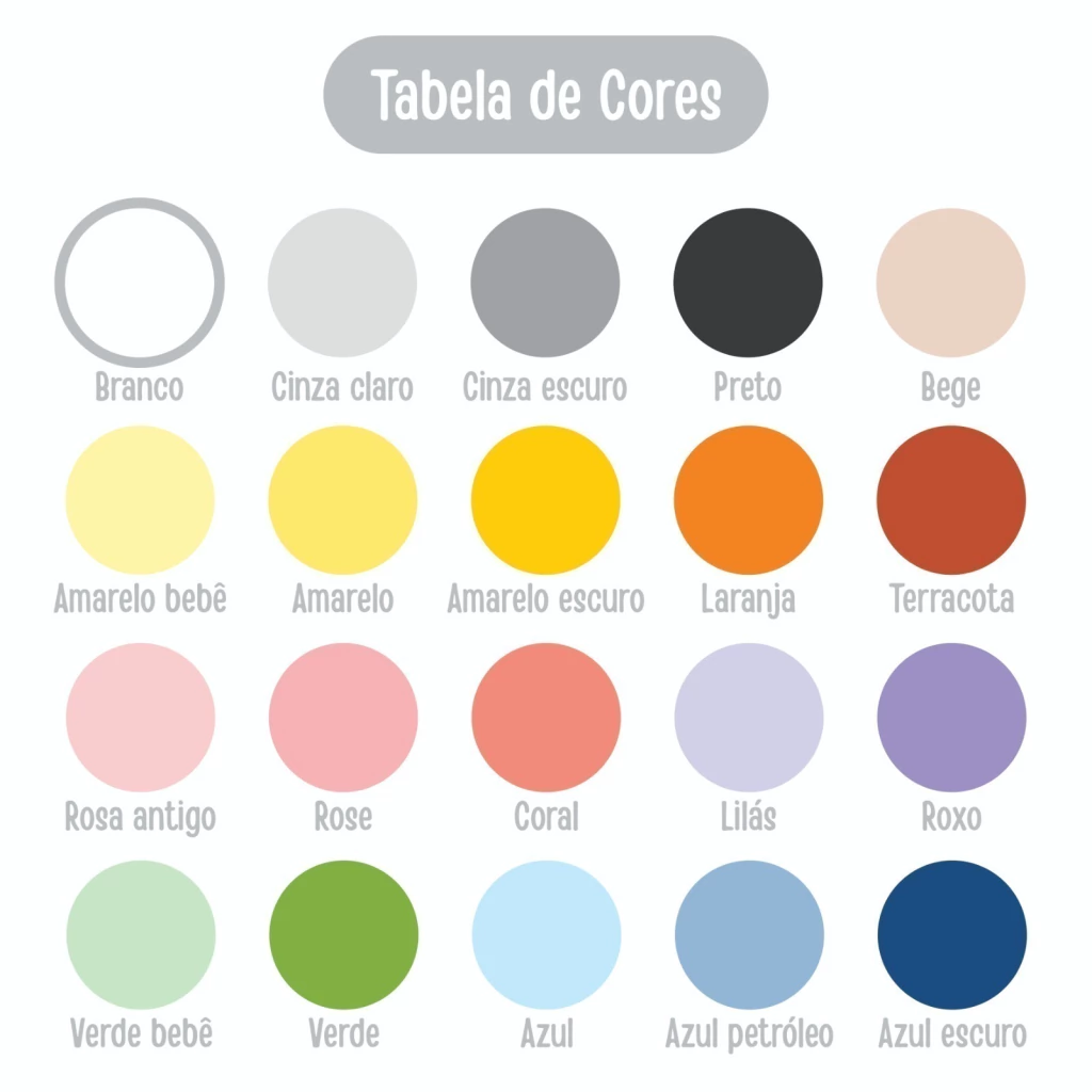 Personalização: Escolha a cor desejada e adicione no campo de observações antes de finalizar a compra, ou envie a informação pelo WhatsApp com o número do seu pedido.