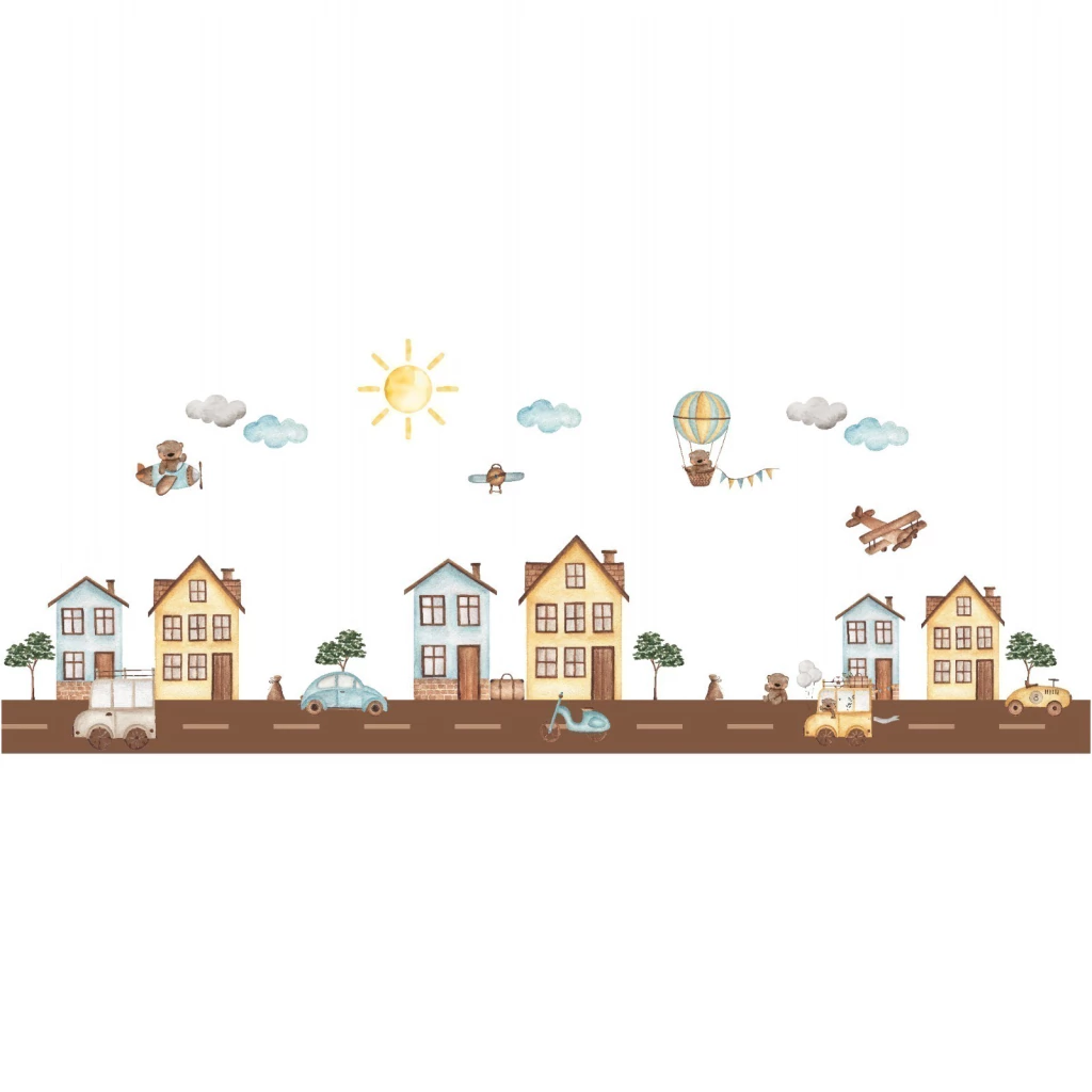 Transforme o quarto do seu pequeno em um mundo de aventuras com o Adesivo de Parede Infantil Carrinhos na Cidade em Aquarela. Este adesivo traz um toque encantador e divertido, perfeito para estimular a imaginação das crianças.