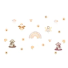 Medidas: O castelo mede 92x90 cm, as fadinhas têm 44x32 cm e 32x40 cm, e as estrelas variam de 2 a 3 cm