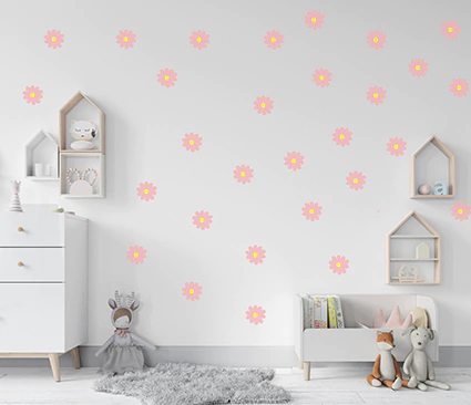 Dê um toque especial e alegre ao espaço com o Adesivo de Parede Infantil Flores - Margaridas. É a escolha perfeita para criar um ambiente lúdico e acolhedor!
