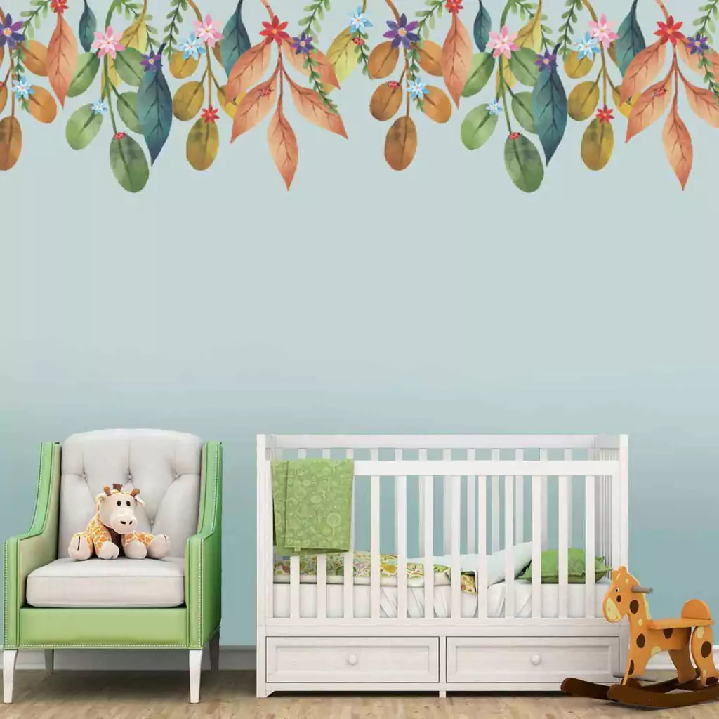 Transforme o quarto do seu filho em um verdadeiro refúgio da natureza com o nosso Adesivo de Parede Folhagens Floridas!