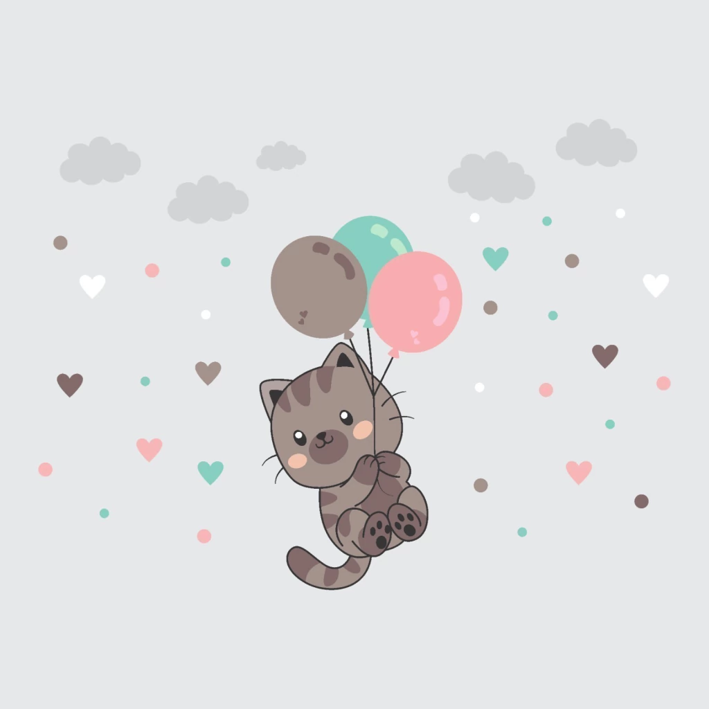 Transforme o quartinho do seu bebê em um lugar mágico e divertido com o nosso Adesivo de Parede Gatinho no Balão!