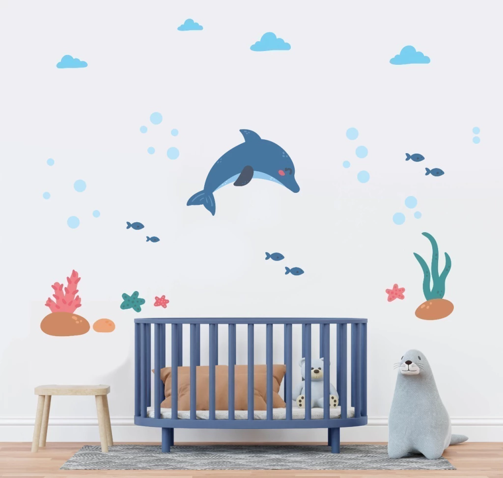 Transforme o quarto do seu filho em um espaço encantador com o Adesivo de Parede Infantil Golfinho e proporcione momentos de alegria e criatividade!