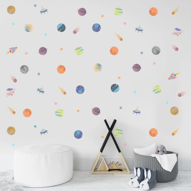 O Adesivo de Parede Planetinhas é perfeito para quem quer transformar o quarto das crianças em um universo cheio de cores e imaginação. Com planetas, foguetes e estrelas, ele é ideal para quem ama o espaço sideral.