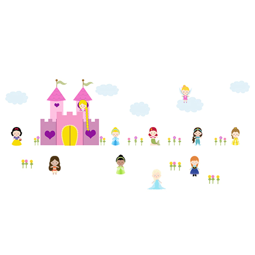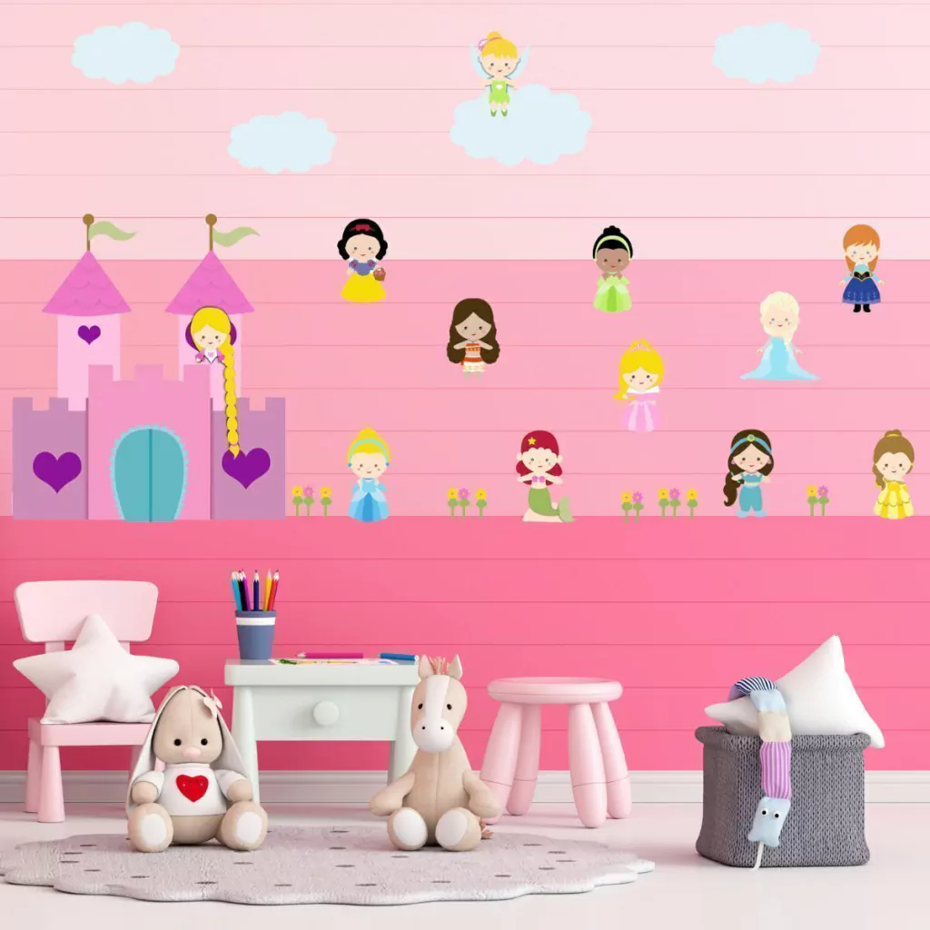 Crie um cenário encantador com o Adesivo de Parede Princesas! Ideal para quartos infantis, esse adesivo transforma o ambiente em um verdadeiro conto de fadas com castelo, flores, nuvens e todas as princesas favoritas.
