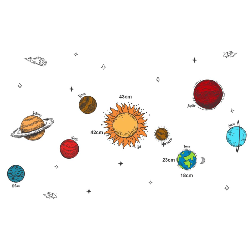 Estimule a imaginação das crianças e transforme o quarto em um ambiente lúdico e divertido com o nosso Adesivo de Parede Infantil Sistema Solar! Esse adesivo cria um espaço perfeito para qualquer brincadeira, permitindo que os pequenos explorem o universo sem sair de casa.