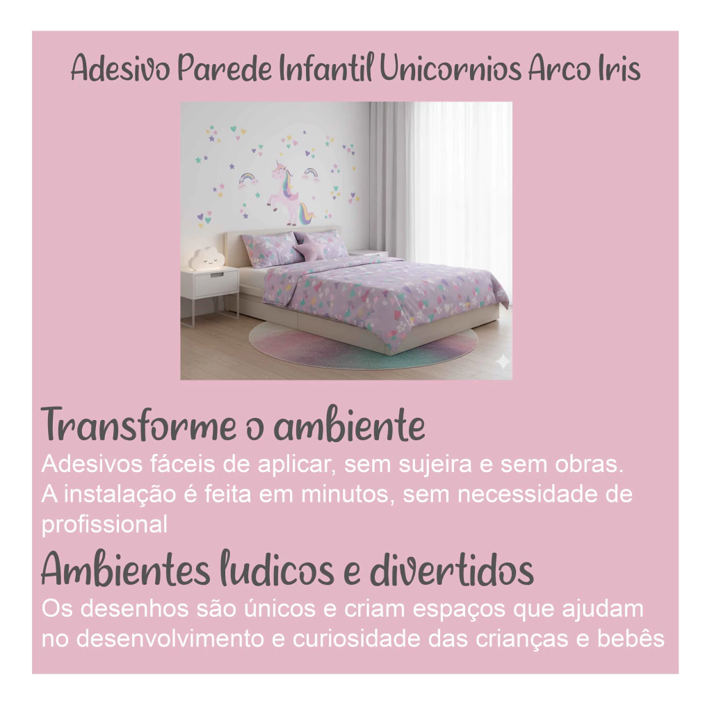 Transforme o quarto da sua menina em um verdadeiro conto de fadas com o nosso Adesivo de Parede Unicórnio com Arco Íris! Este adesivo encantador é perfeito para deixar a decoração ainda mais alegre e cheia de magia. Ideal para meninas de todas as idades, ele traz um toque especial e único ao ambiente.