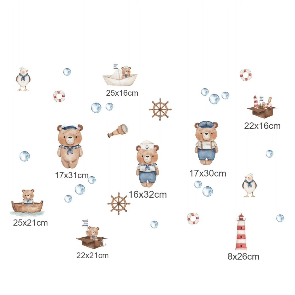 O adesivo Ursinhos Marinheiros em estilo aquarela traz um toque de delicadeza e diversão para ambientes infantis. Com seu design encantador, transforma paredes em cenários lúdicos que estimulam a imaginação das crianças.