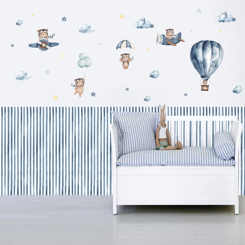 O papel de parede listrado não acompanha a cartela de urso aviador, que deve ser adquirida separadamente.
