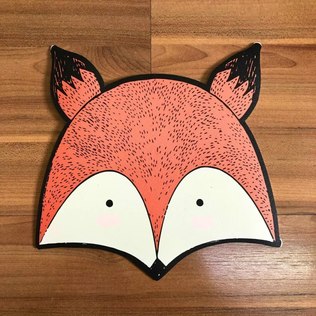 O Tapete Playmat - Raposa possui 1,00m de largura e 1,00m de altura, recortado em formato de raposa, ideal para o quarto das crianças.